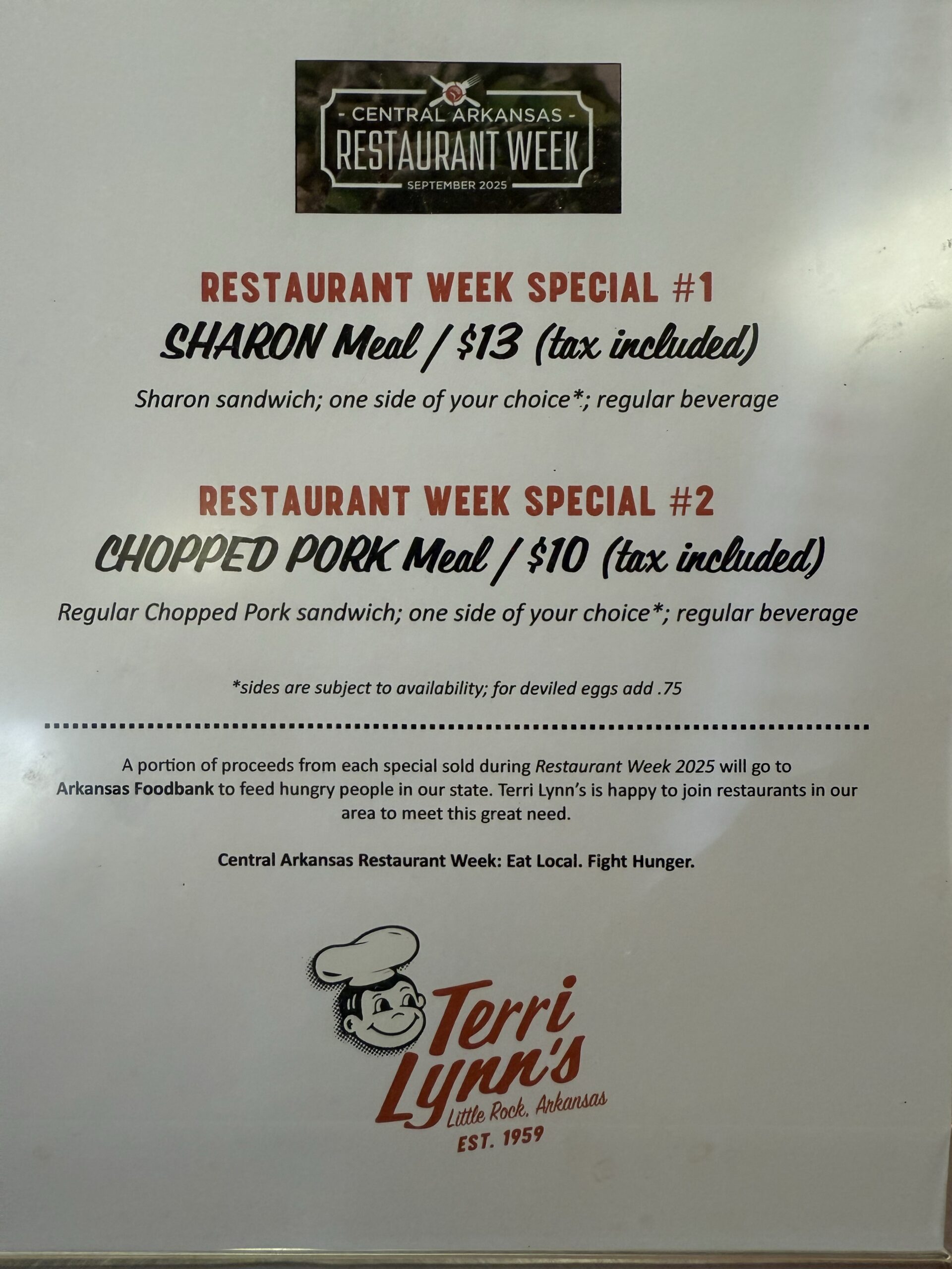 • This meal benefits the Arkansas Foodbank.